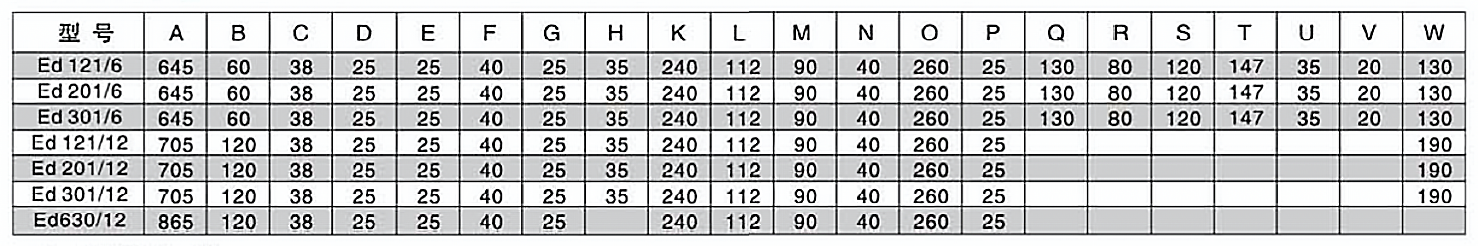 外形尺寸表
